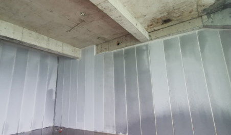板缝填充板材安装到位后,对板缝、板与墙梁顶板之间的缝隙进行处理。